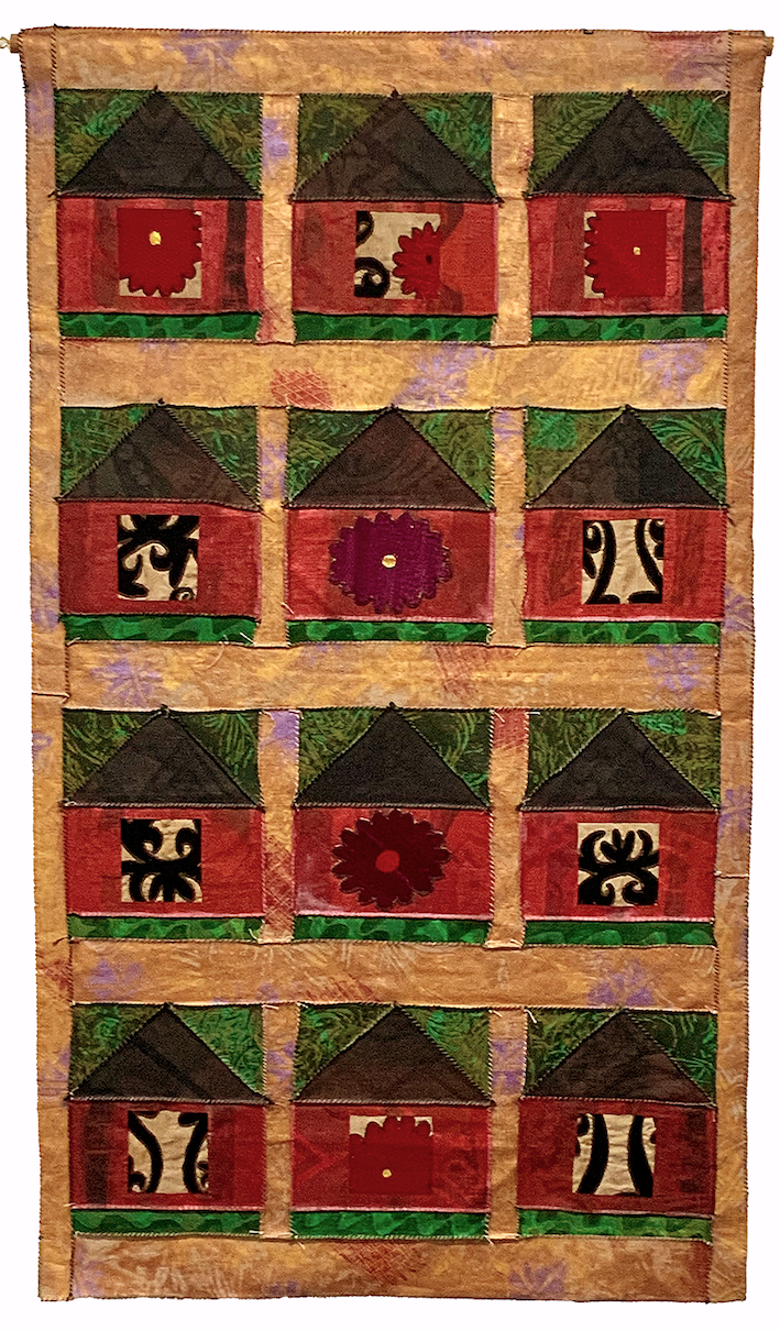 Måla och tryck på tyglappar och sy ihop med tydliga kastsömmar.